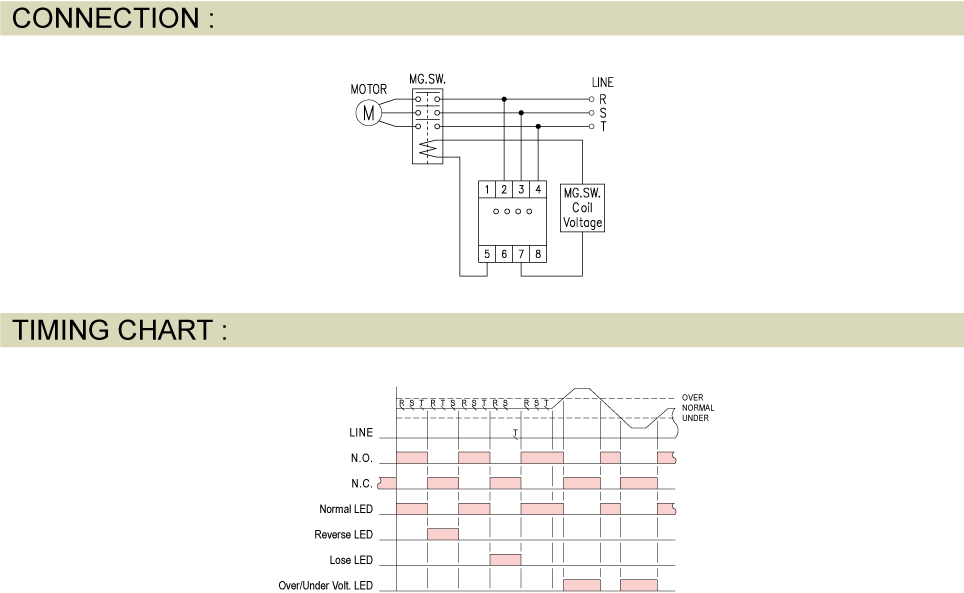 Prev Next Protective Relay Voltage Relay APR-4V 3-PHASE SEQUENCE VOLTAGE PROTECTION RELAY Add to inquiry Inquiry list Description Wiring and timing diagrams Overall dimensions or other Download 3-phase voltage and fault detector Can detect abnormal condition to prevent damages to the equipments Auto shut-of while detecting excessive or insuficient voltage, range from 5% to 20% available (seeTYPE SELECTION for detail) Out-of-phase detection while the motor operating Install on DIN rail or fix with screw are available and no socket require APR-4V Catalogue