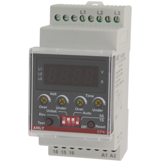 Prev Next Protective Relay Voltage Relay EP4-1 DIGITAL VOLTAGE PROTECTIVE RELAY Add to inquiry Inquiry list Description Wiring and timing diagrams Overall dimensions or other Download Digital voltage indicator and fault detector Over voltage detection with 0.5sec~120sec tripping delay Under voltage detection with 0.1sec~10sec tripping delay Phase-loss detection with 2sec fixed tripping delay Phase sequence detection with 0.5sec fixed tripping delay 3-phase voltage balance(±5%) decetion with3sec fixed tripping delay Phase-loss detection with active motor Manual / Auto Reset selectable - 1sec or 5sec auto reset tripping delay EP4-1 Catalogue EP4-1/EP4-1_DC User Manual