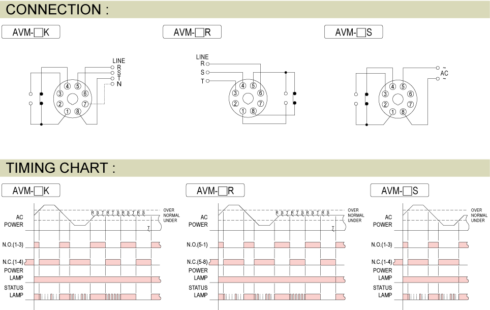 Prev Next Protective Relay Voltage Relay AVM MONITORING & PROTECTION RELAY Add to inquiry Inquiry list Description Wiring and timing diagrams Overall dimensions or other Download Protect against: -Over Voltage (5%~20%) -Under Voltage (5%~20%) -Phase Reversal -Phase Loss -Phase Unbalance (±20%) Phase Loss is monitored at start-up and while operating Fixed 3 second delay for Phase Unbalance AVM Catalogue