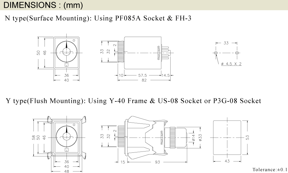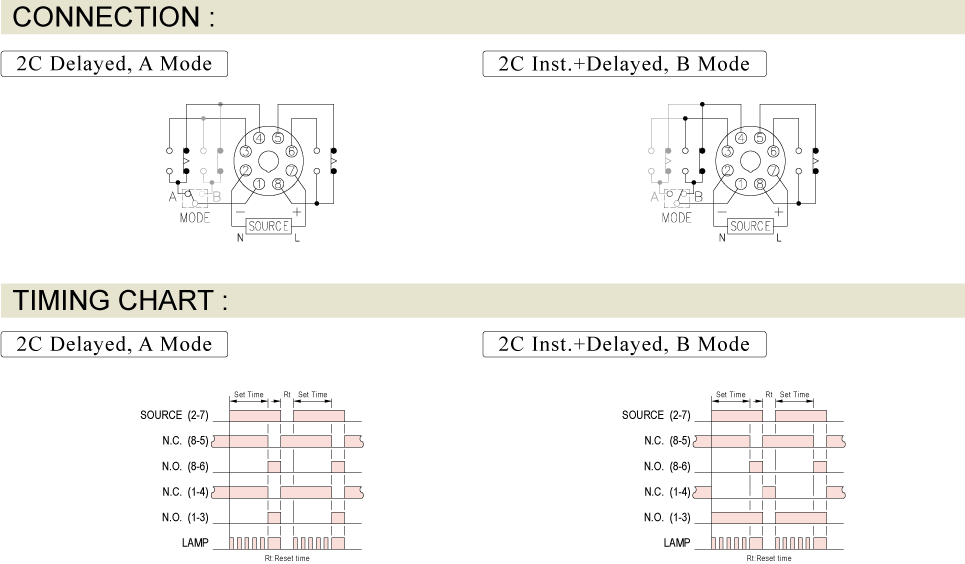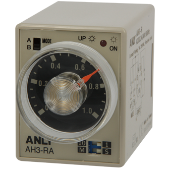 Prev Next Timer Analogue Timer AH3-R□ WIDE VOLTAGE MULTI-RANGE ANALOGUE TIMER Add to inquiry Inquiry list Description Wiring and timing diagrams Overall dimensions or other Download Wide operating voltage range in a single unit, from AC/DC 24V~240V Customized CMOS IC for low power consumption, high operation stability and extreme timing accuracy Flush mount with Type Y-40 adapter and surface mount without adapter 5 (RA, RB, RC, RD, RE) timing series available Each timing series has 4 time ranges, selectable via DIP switch A/B Mode selectable with a slide switch. A Mode for 2C Delayed output contacts. B Mode for 2C Inst.+Delayed output contacts. UL, C-UL recognized and CE certified AH3-R Catalogue