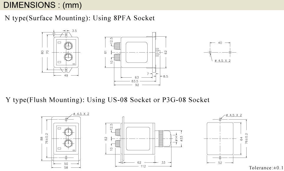 Prev Timer Analogue Timer ATDV TWIN ANALOGUE TIMER Add to inquiry Inquiry list Description Wiring and timing diagrams Overall dimensions or other Download Customized CMOS IC for low power consumption, high operation stability and extreme timing accuracy Independent adjustment for continuous ON-OFF operation and time 16 different time ranges available 2 operating voltage in a single unit, AC110V and 220V 5(A, B, C, D, E) timing series available* Each timing series has 4 time ranges, selectable via DIP switch* CE certified Note: "*" indicates applicable to ATDV multi range series only ATDV Catalogue